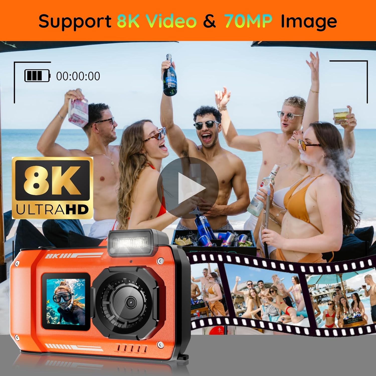 【8K & 70MP】Capture stunning details with 8K video and 70MP photos. This compact camera delivers crystal-clear images and videos, perfect for documenting adventures in high quality.