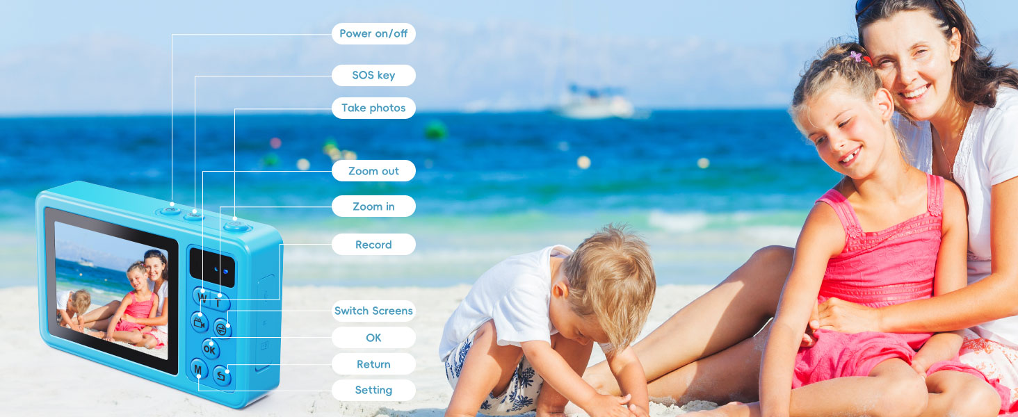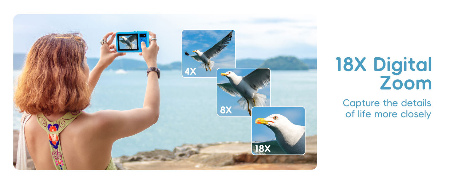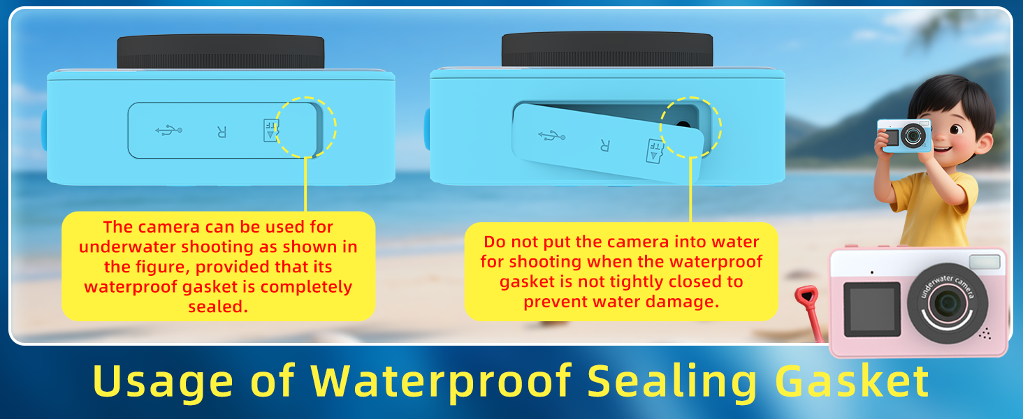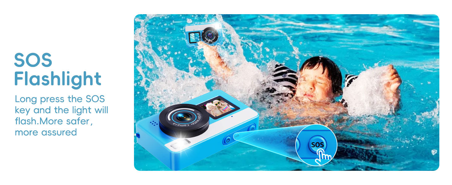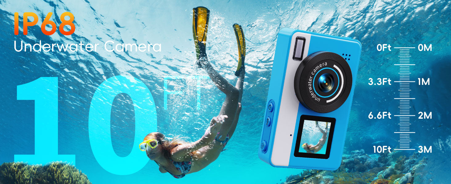 【10FT IP68 Underwater Camera】This waterproof digital camera can shoot freely directly 10 feet underwater. Whether swimming, surfing or walking on the beach, it can perfectly capture the fantasy and agility of the underwater world. Before entering the water, make sure the battery cover is tightly locked so that every exploration is worry-free.