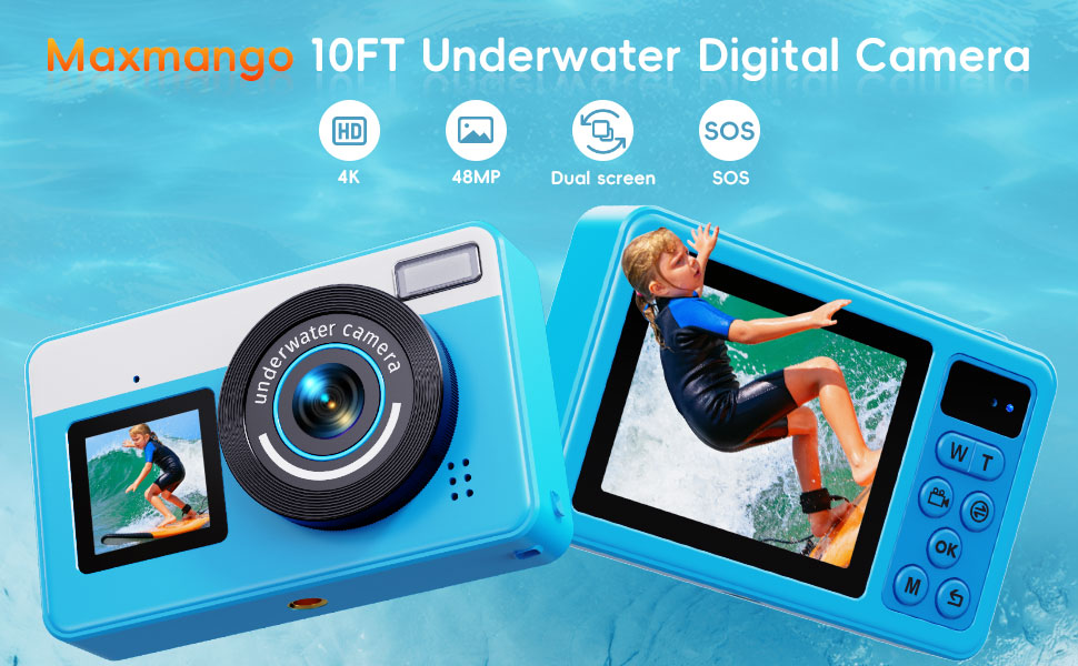 Maxmango 4K Underwater Digital Camera 48MP Dual-Screen Waterproof Camera